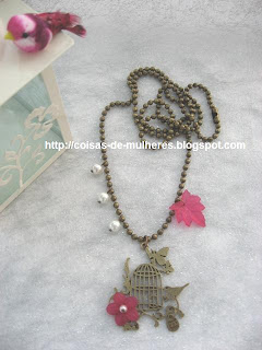 Tão romântico :))) Para usar com duas voltas! Corrente de bolinhas em ouro velho. Pendente gaiola + pendente "made for you". Pérolas, flor e folha rosa. Comprimento corrente fechada: 50cm. Altura pendente: 6cm. 7,00e