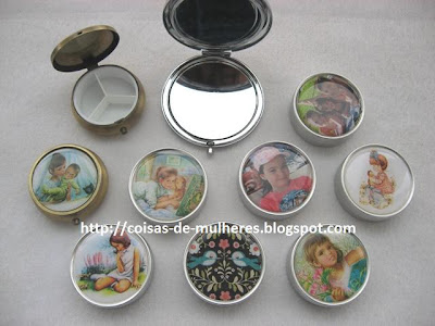 Espelhos, caixinhas para transportar comprimidos e latinhas.